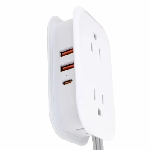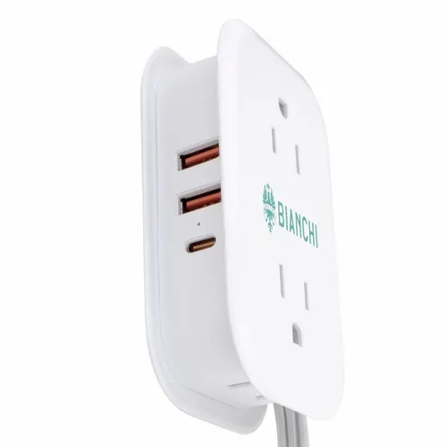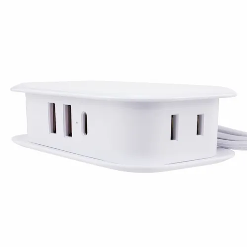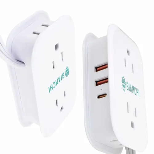 When there's only one power outlet, save the day with the Airport Hero Two! This promotional power strip for travel has 4 power outlets and 3 USB ports.