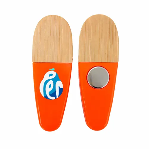 • Align your brand with sustainability using the Environmental Power Clip. This eco-conscious tool features a natural bamboo and wood grip paired with a durable plastic body, making it a perfect functional giveaway for environmentally-minded campaigns. Its built-in magnet ensures your logo stays front and center on refrigerators or office cabinets.