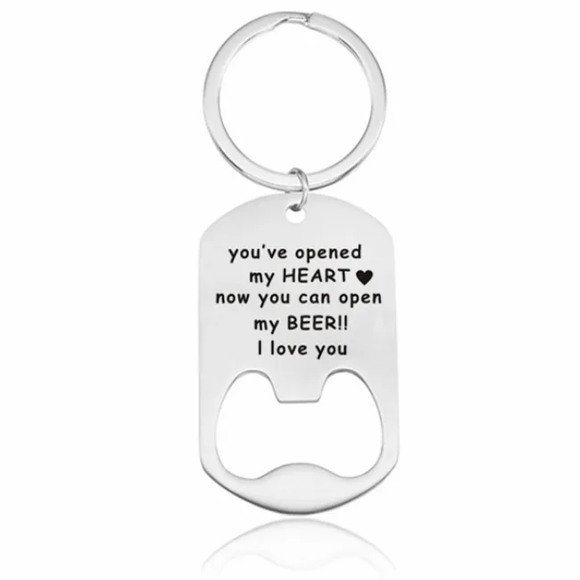 Made of superior silver-colored alloy, this Bottle Opener Keychain is handy, sturdy, and anti-rust, and it can handle thousands of bottle tops. Multifunctional for liquor and soda bottles, and can be utilized for both personal and business purposes. Its unique and lightweight design makes it an ideal gift for any occasion! Plus, the color-filled quotes/logo, which can be customized, is a terrific way of marketing your brand!