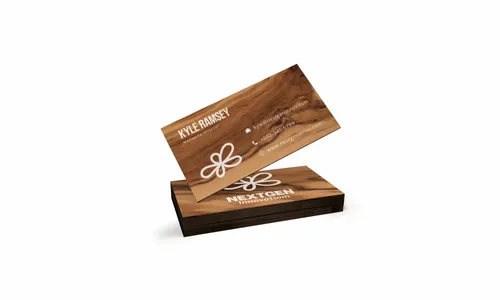 Our cards are available in white cardboard, kraft paper, pearl glitter paper, eggshell texture, and specialty stock. Non-paper options include PVC, stainless steel, acrylic, and various types of wood such as bamboo, basswood, cherry wood, and black walnut.