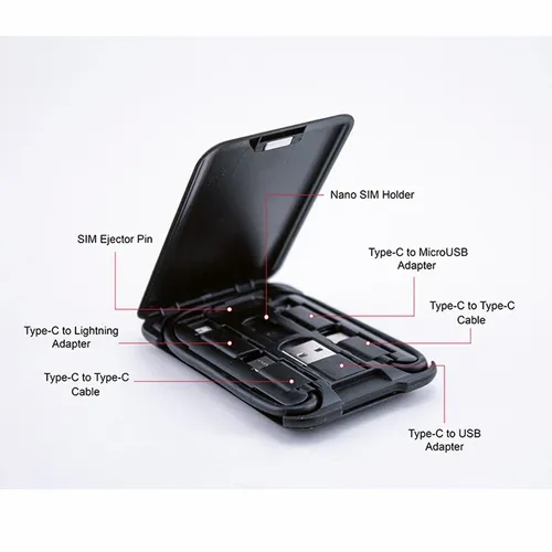 Equip your life with this sleek pocket-size adapter kit. With its cleverly compact design, it shrewdly holds several adapters for modern technical issues. The Cable Card will help tackle unforeseen adapter related problems that colleagues might experience during a business trip or meeting. With this easily stored and handy kit, you might be the one who saves the day. Includes: 1 Short USB(male)-to-MicroUSB(male) cable 1 MicroUSB(female)-to-Type-C(male) adapter 1 MicroUSB(female)-to-Light