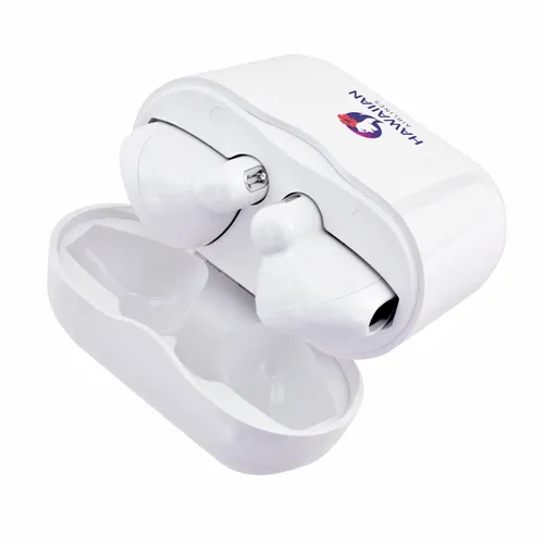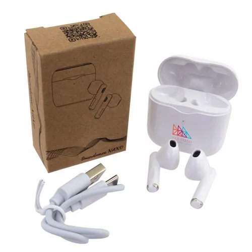 Our Soundwave Nano wireless earbuds have a simple and sleek design that would look great with any logo. It features touch control for easily managing music, calls, and voice assistants for those busy teams that are always on the go.
