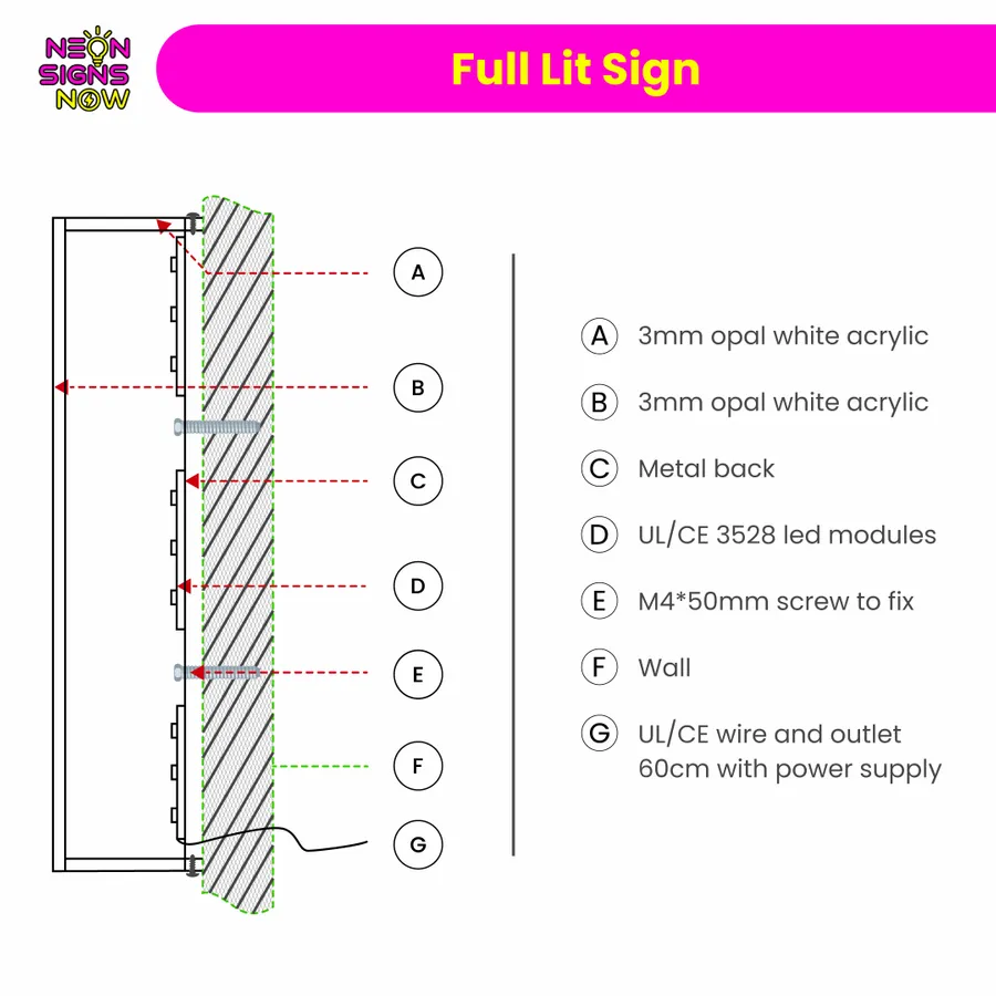 Crafted with meticulous attention to detail, our Full-lit Letter Sign features high-quality materials that ensure durability and longevity. Each letter is fully illuminated with vibrant LED lights, creating a stunning and radiant display that demands attention.