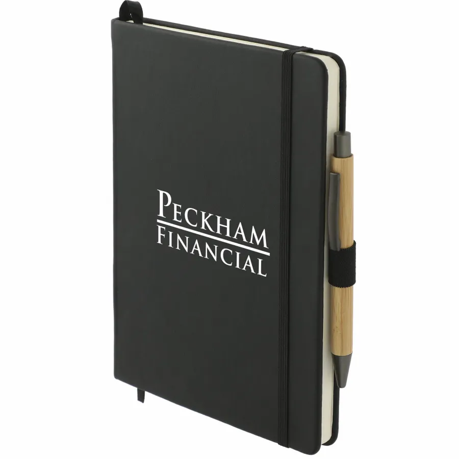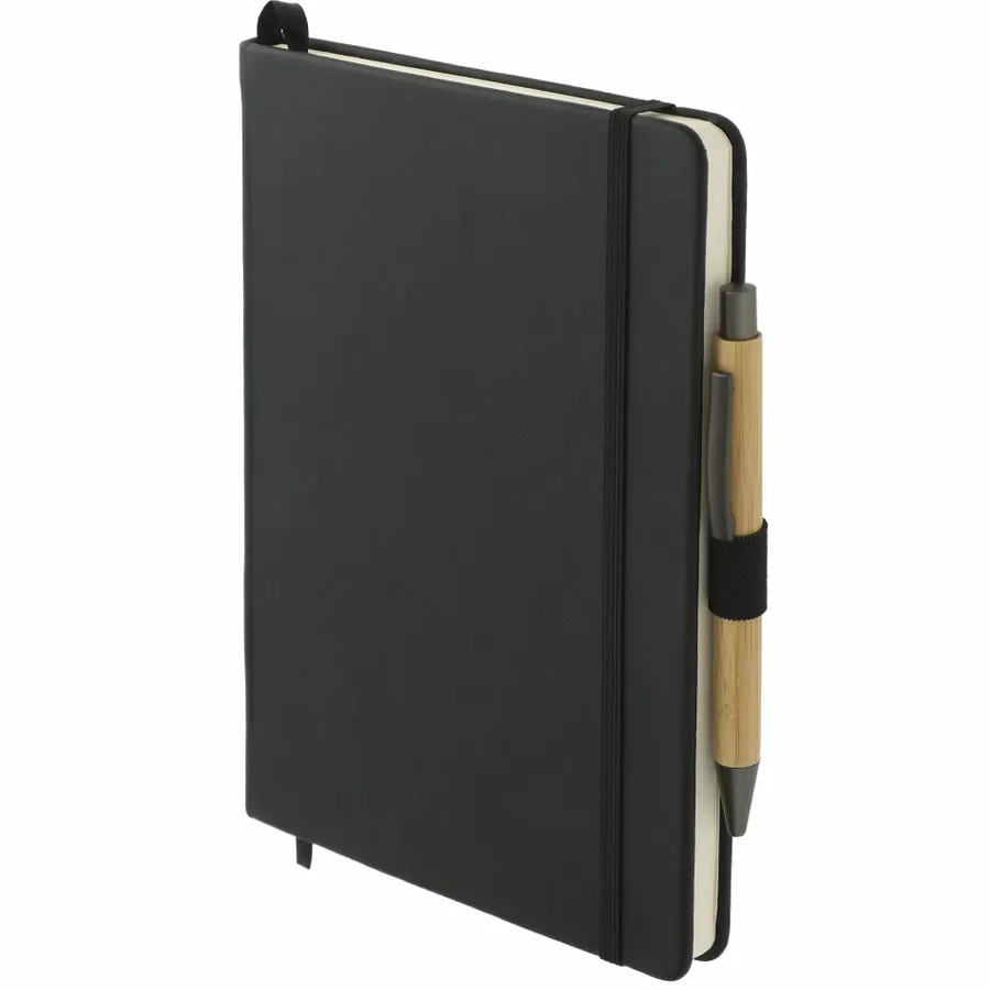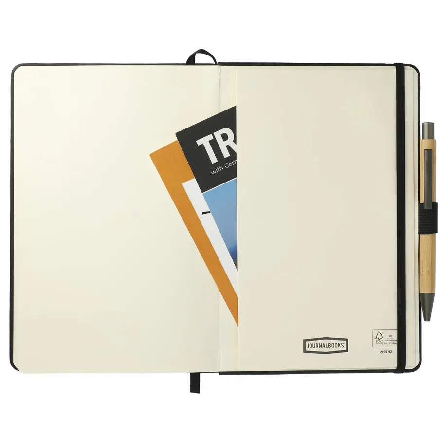 The 5.5 x 8.5 Cactus Leather Bound Journal Set includes the 5.5 x 8.5 Cactus Leather Bound Journal (2800-92) and the Bamboo Quick-Dry Gel Ballpoint (1066-49). Features a uniquely crafted cover made of 20% of cactus components and 80% bio polyurethane. Color matching elastic closure, pen loop and ribbon page marker. 80 sheets of FSC Mix cream lined paper. Through a partnership with 1% For The Planet, one percent of sales of all EcoSmart products are donated to environmental nonprofits.