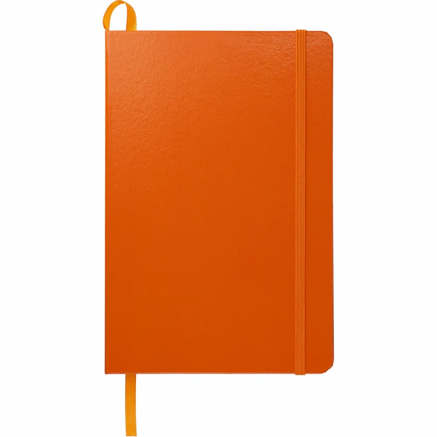 The 5.5 x 8.5 FSC Mix Ambassador Hardcover Bound Journal is a hard cover bound journal with 80 sheets of cream lined paper. The Journal features built-in elastic closure, ribbon page marker, and expandable accordion pocket.