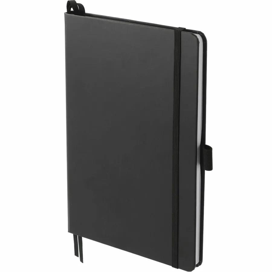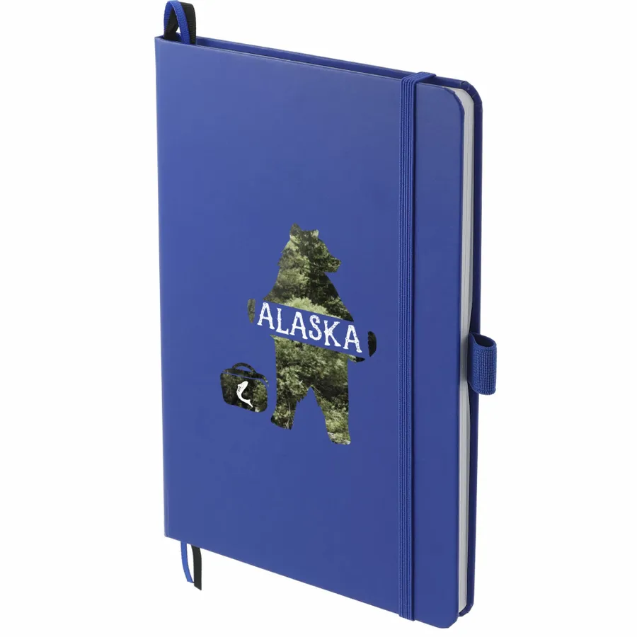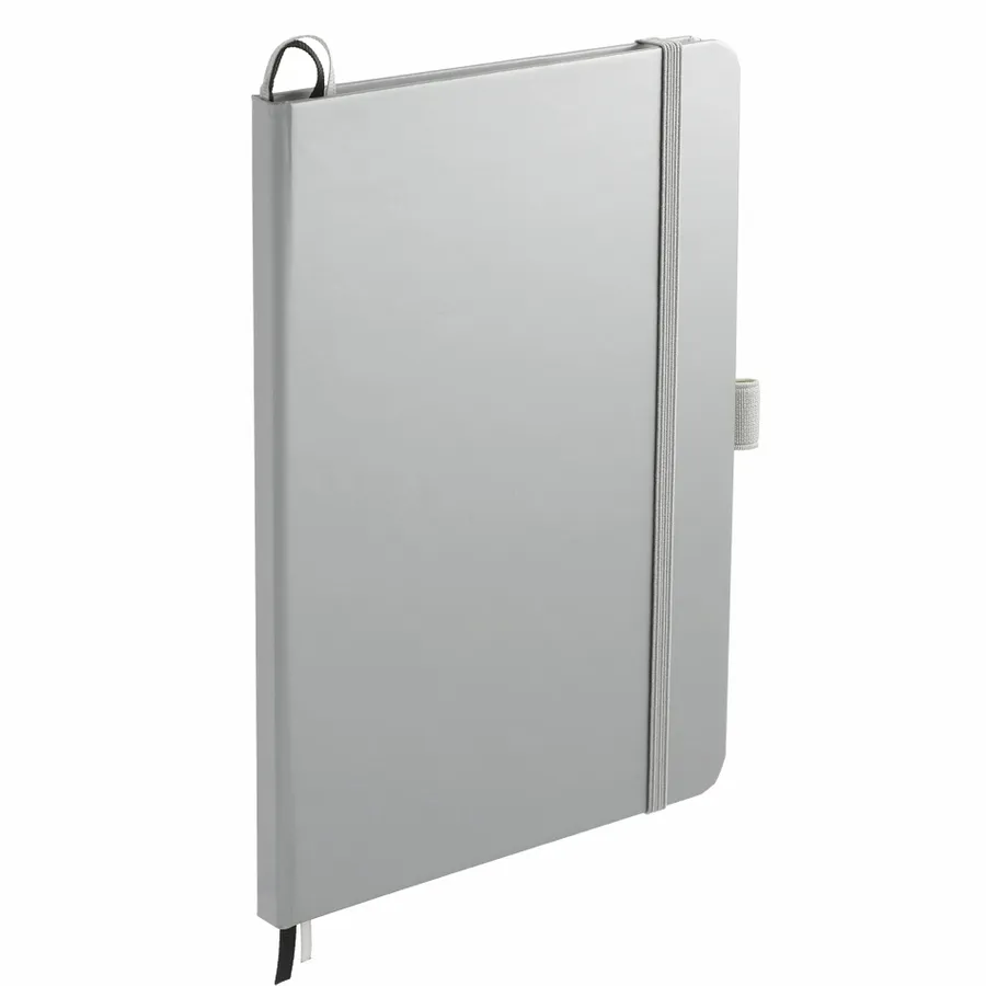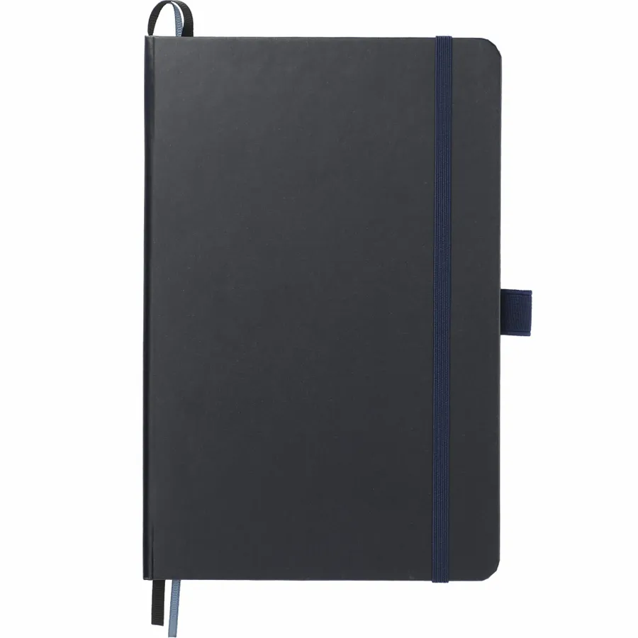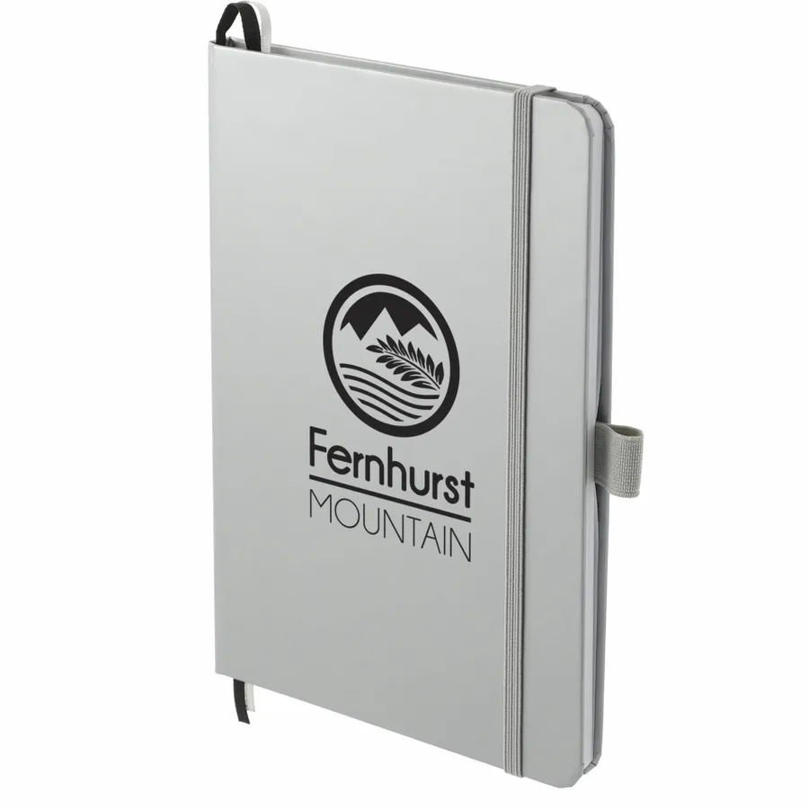 The 5.5 x 8.5 FSC Mix Bound Journal features a FSC-certified paper hard cover with 80 sheets of white FSC-certified, soy-based ink lined paper. Includes color-matching elastic closure, pen loop and ribbon page marker. Through a partnership with 1% For The Planet, one percent of sales of all EcoSmart products are donated to environmental nonprofits. Digital Inkjet not available on Silver color.