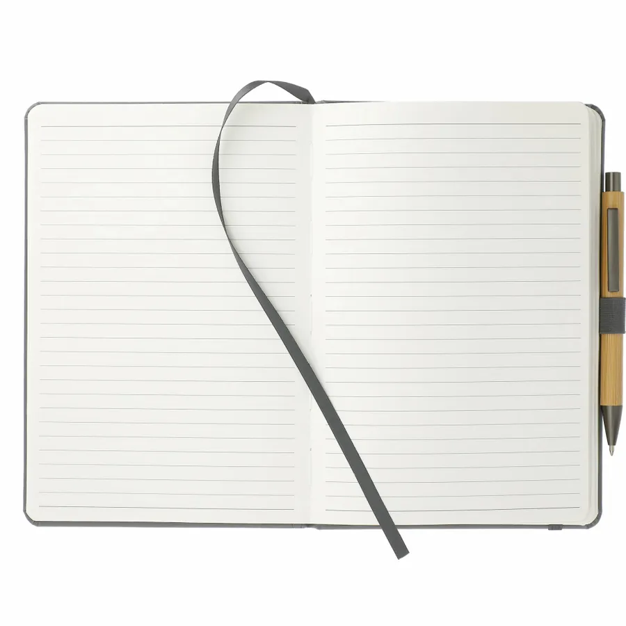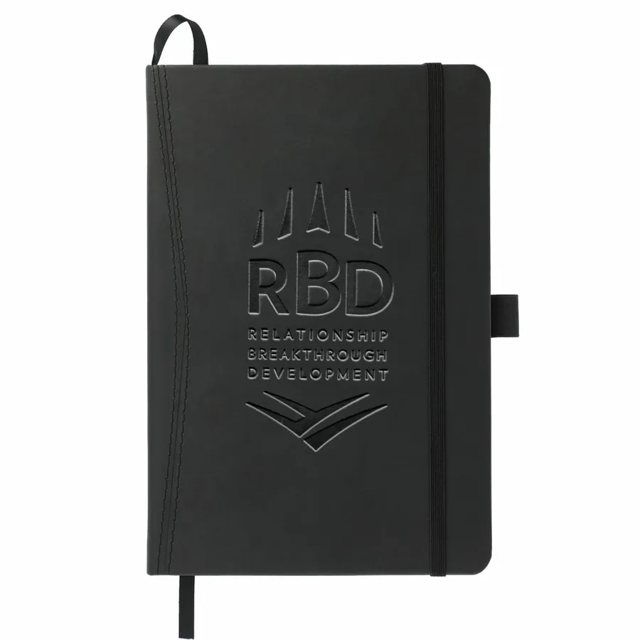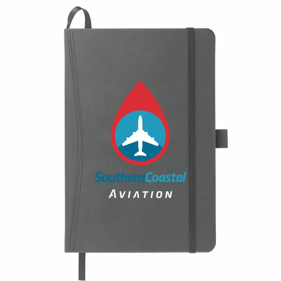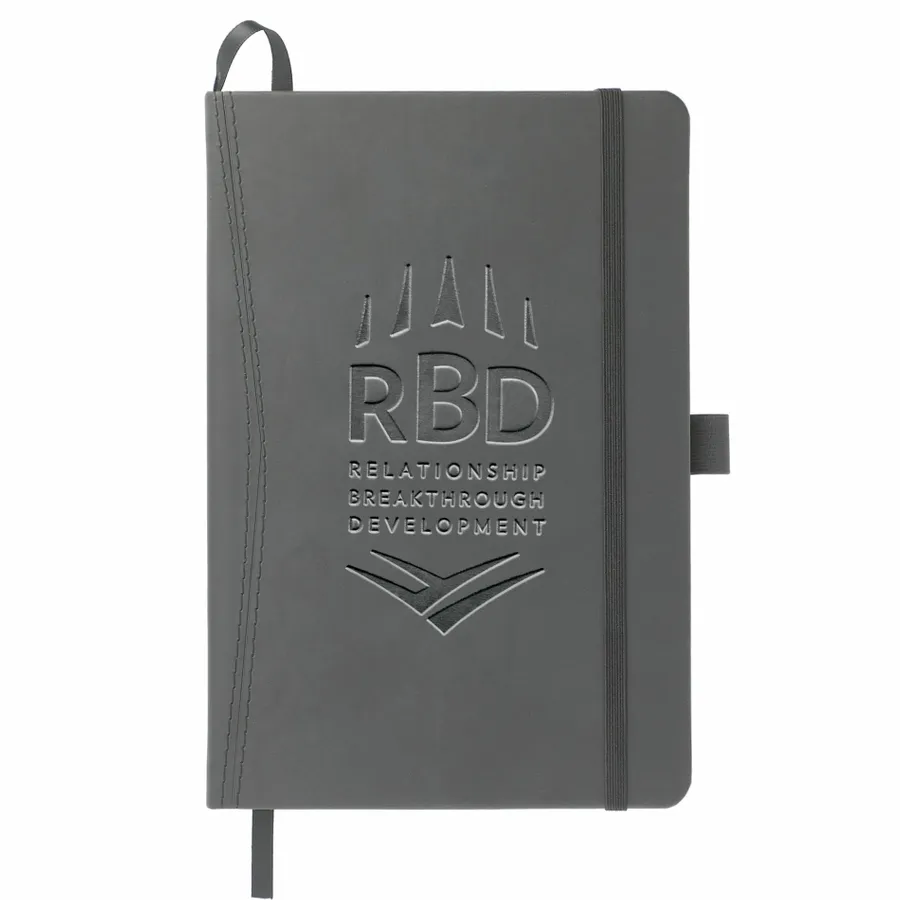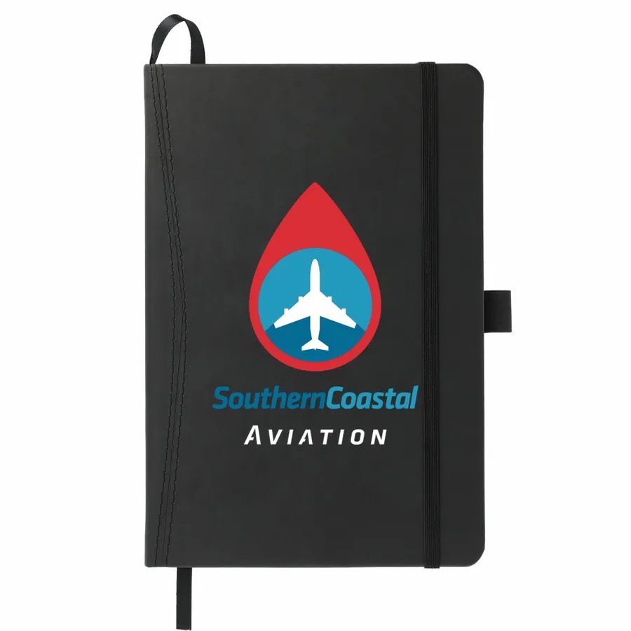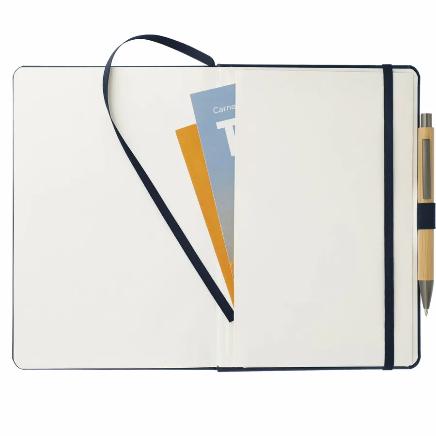 The 5.75 x 8.5 FSC Mix Pedova™ Pocket Bound Journal features a stitched hard cover, elastic pen loop, and built-in elastic closure. Includes a corresponding cover color ribbon page marker and expandable accordion pocket. Includes 80 sheets of FSC Mix white lined paper. Pen is not included.