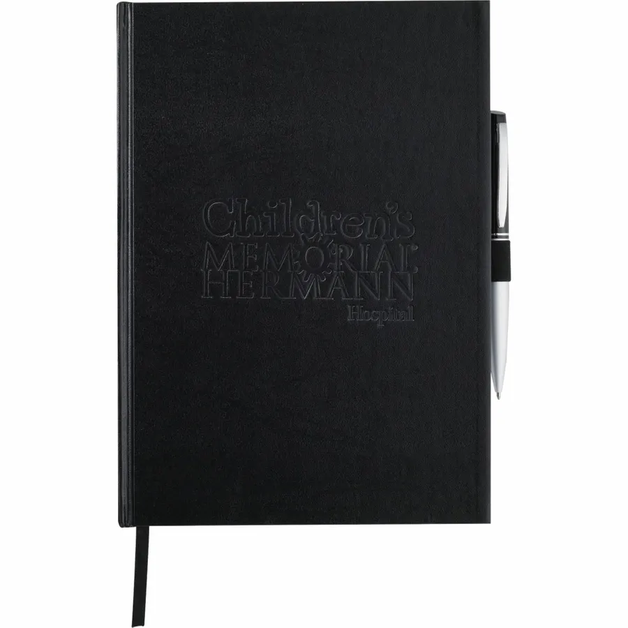The 7 x 10 FSC Mix Executive Large Bound Journal is a hardcover bound journal that contains 72 sheets of FSC Mix white lined paper. Its hard, protective cover is constructed from sturdy UltraHyde materials. The Executive Journal features a stretchy elastic pen loop to hold your writing instrument, plus a convenient ribbon page marker to save your place between uses. Pen not included.