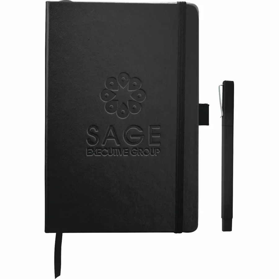 The Nova Bound Journal Bundle Set includes a Nova Bound Journal (2800-11) and Ambassador Square Ballpoint (6620-31). The Journal features a faux, leather-like hard cover with built-in elastic closure. This custom notebook includes a ribbon page marker and expandable accordion pocket. The Nova Bound Journal Bundle Set includes 96 sheets of lined white paper. This item cannot be configured online. Contact us to order. (2800-11) Nova Bound Journal (6620-31)Ambassador Square Ballpoint Faux, leather-like hard cover Built-in elastic closure Ribbon page marker Expandable accordion pocket 96 sheets of lined white paper This item cannot be configured online