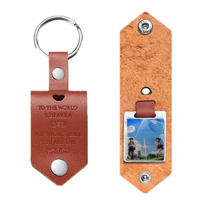 Printing Style: laser cut on the leather part, imprinted full-color artwork on the inside metal.What are your key chains made of?
