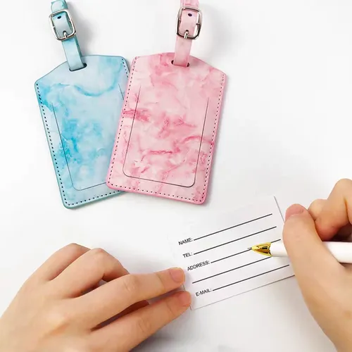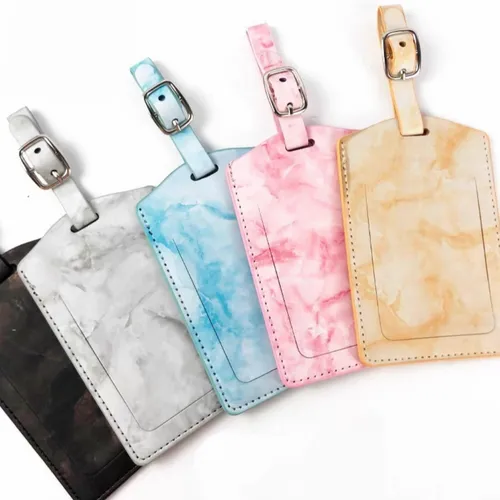 Flip Marbling Luggage Tags - Introducing our Flip Marbling Luggage Tags – the perfect blend of style and functionality. Crafted from premium quality PU Leather, these tags add a touch of elegance to your travel gear. Designed to withstand the rigors of travel, they feature a secure buckle strap and a privacy flap to protect your personal information. Elevate your journey with our Luxury Leather Luggage Tags and travel with confidence and style.