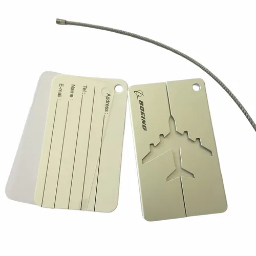 Rectangle Aircraft Aluminum Luggage Tag - Introducing our Rectangle Aircraft Aluminum Luggage Tag – the perfect blend of style and functionality. Crafted from premium Aluminum Alloy, these tags add a touch of elegance to your travel gear. Designed to withstand the rigors of travel, they feature a secure buckle strap and a privacy flap to protect your personal information. Elevate your journey with our Luxury Leather Luggage Tags and travel with confidence and style.