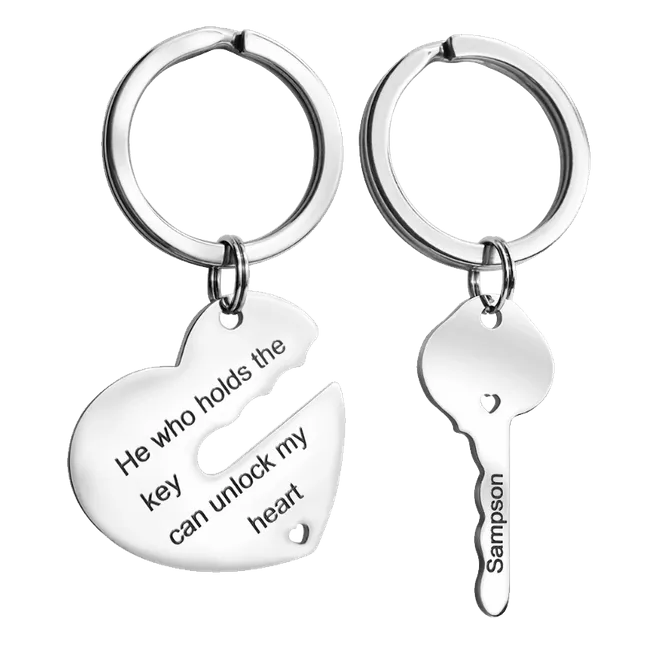 It's also stylish, as it's built of silver-colored iron, which is known for its durability and resistance to rust. You'll get a set of heart and key, as sweet as it is! Customization is available on either one or both sides of the product. Lasers are used to cut the designs. It is truly convenient, practical, and nifty, with a heart size of 2.3cm x 3mm, a key size of 1.5cm x 3.2cm, and a split ring diameter of 2.8cm!