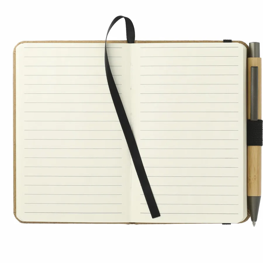 The 3.5 x 5.5 FSC Mix Pocket Bound Journal Set includes the 3.5 x 5.5 FSC Mix Pocket Bound Journal (2800-96) and the Bamboo Quick-Dry Gel Ballpoint (1066-49). The 3.5 x 5.5 FSC Mix Pocket Bound Journal features a FSC Mix paper, hard cover. 80 sheets of cream FSC-certified lined pages. It also features an elastic closure, ribbon page marker, elastic pen loop and back document pocket. And through a partnership with 1% For The Planet, one percent of sales of all EcoSmart products are donated to environmental nonprofits. Due to the nature of the material, there may be color variances.