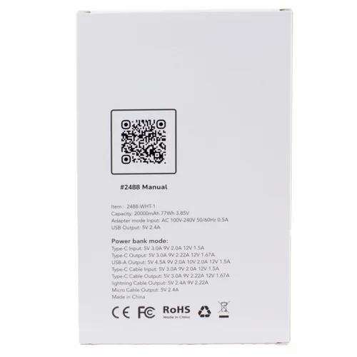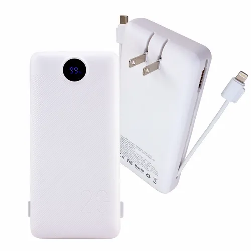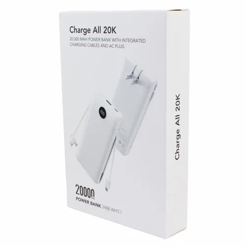 Charge All 20K Power Bank with Integrated Charging Cables and AC Plugs