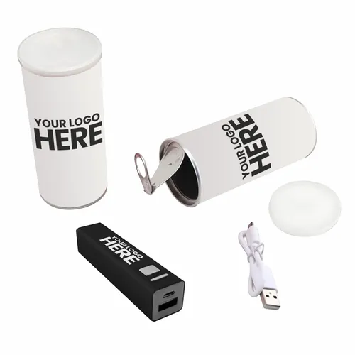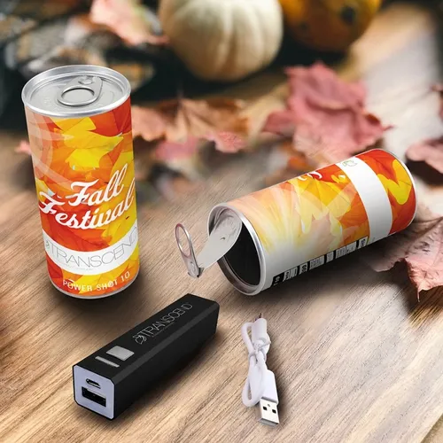 Power up your phone with the PowerShot 10. 2200mAh Powerbank in fully customizable wrap packaging that resembles an energy drink pop can. Phone battery getting low? No worries, simply pop open the PowerShot 10 and connect Powerbank to re-charge your phone!
