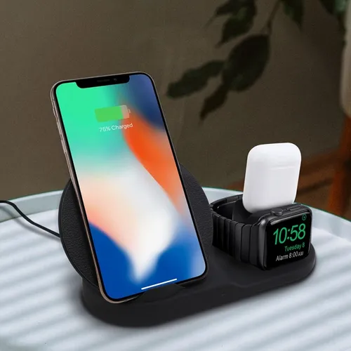 Busy business teams need efficiency, and the 3-in-1 Fast Wireless Charger is a better way to simplify the life of productive team members; it will simultaneously charge a compatible phone, earbud case, and smartwatch. These are easily the most common devices used today, and this will help centralize these important charging needs. Plus, it will help reduce desktop clutter, avoid tangled up device cords, and simplify anyone's busy day at home or office. smart device that l
