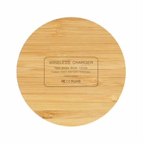 Bamboo style fast 15W wireless charging pad with bright and full-color logo. Decorated with a light up graphic Comes with 6 ft-long cable included in the package.