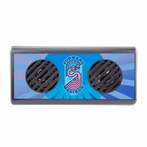 A wireless speaker with full-color printing on the front. It has a powerful sound output with two 4W speaker units. It's great for in-the-office background music or recreational get-togethers.